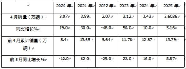 ---今年前4月累计销量为13.79万辆,居近6年同期最高,居于较好水平。